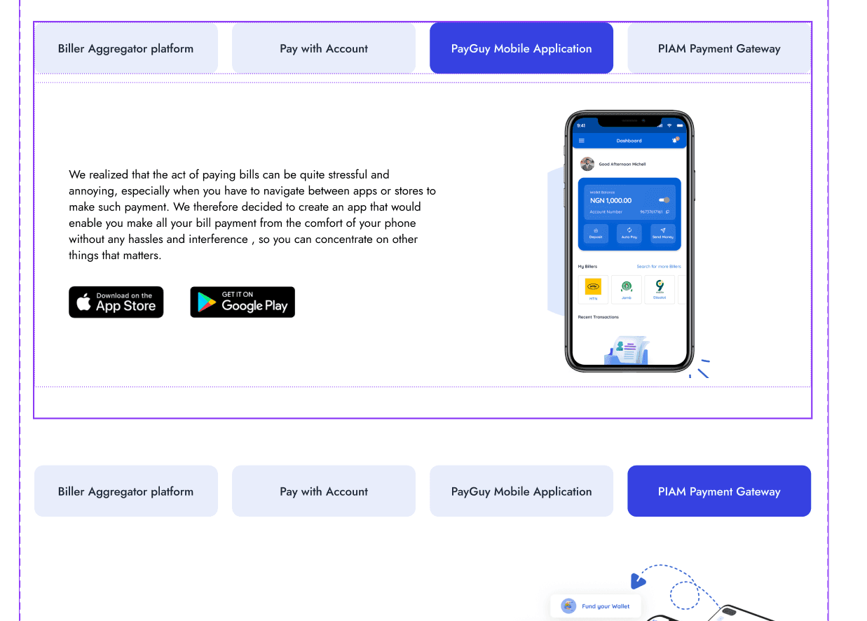 Dashboard: Designed a dynamic dashboard that provides a quick overview of the user's active services, recent transactions, and account status at a glance. Used clean data visualization to make complex financial information easy to digest.